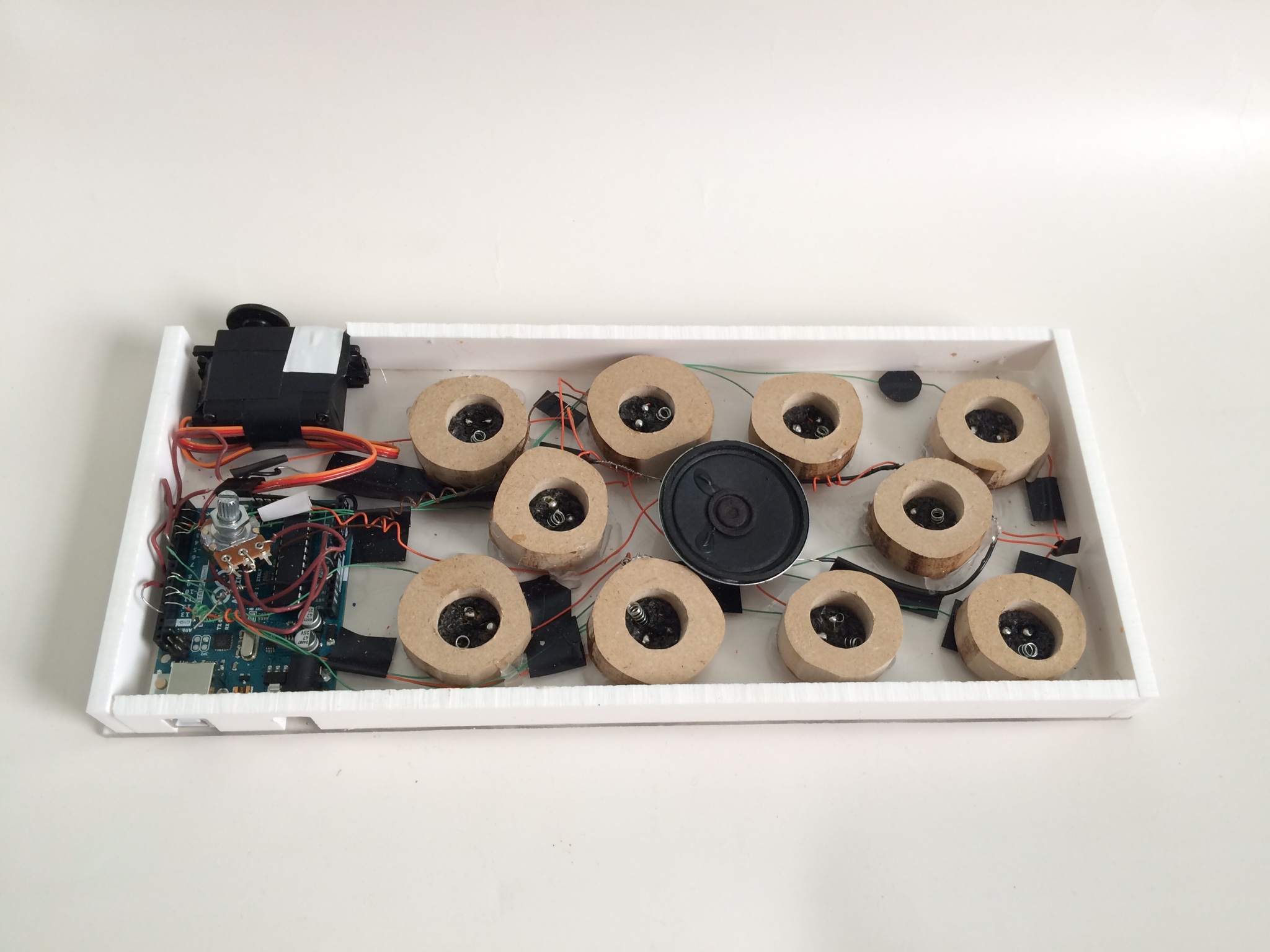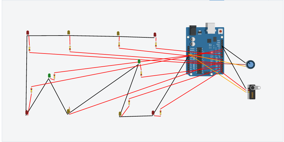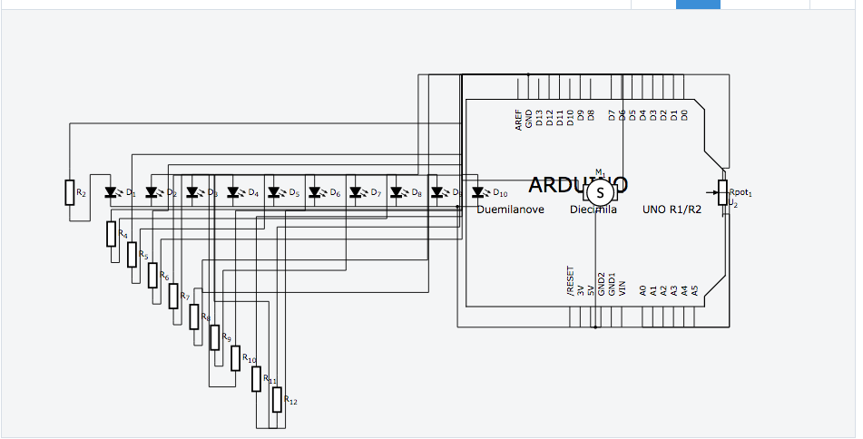 This game is made up of ten individual LEDS, a servo motor, a speaker and a potentiometer.